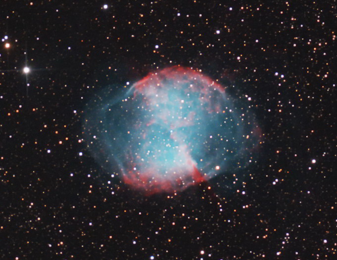 Toto je prvá pointovaná fotografia deep-sky objektu, ktorú som robil cez Newtona. Bol použitý aj komakorektor MPCC, ktorý je pri fotení Newtonom veľmi dôležitý. Rok predtým som tento objekt taktiež fotil prvýkrát cez refraktor ED80. Rozdiel bol aj ten, že tamto bolo pointované manuálne a spravil som len pár záberov. Tentoraz som fotil v podstate celú noc len tento objekt až kým nezačal vadiť Mesiac po poslednej štvrti. No a takisto treba spomenúť, že tu som použil už aj modifikovaný fotoaparát. Rozdiely teda môžete sami vidieť.